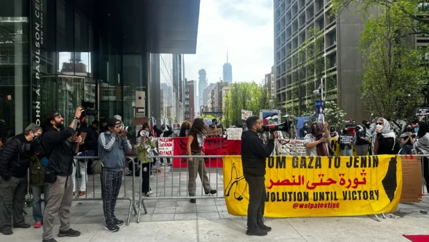 “We have made it clear to the institution what the only appropriate resolution is. And we will not de-escalate, we will not decamp and we will not rest until this university — which has blood on its hands — cuts every last tie with a Zionist institution, to the Zionist entity,” one protester shouted outside the John A. Paulson Center, the university’s fitness center and classroom space named after a Jewish alumnus.