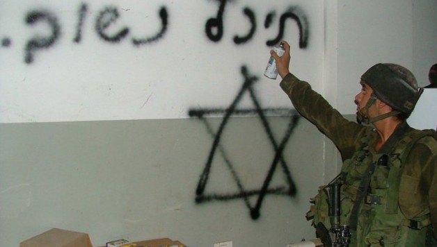 If that was not clear enough, the words “Fuck Hamas” had been carved into a concrete wall in the staircase. “Burn Gaza down” and “Good Arab = dead Arab” were engraved on a coffee table. The star of David was drawn in blue in a bedroom.