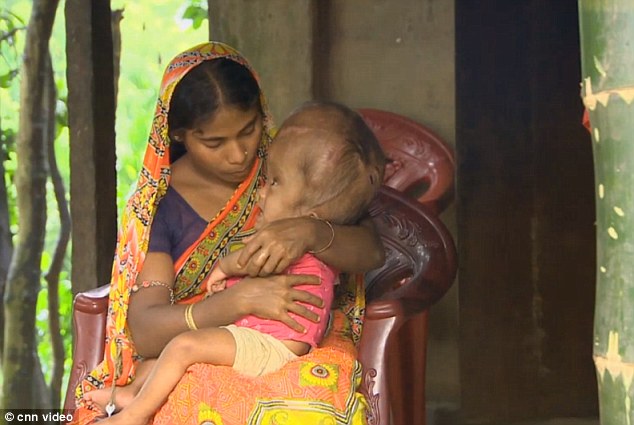 Although it is still painful for the little girl to lift her head up, she is described as ‘playful’ by her young parents and has become the ‘centre of attention’ of her village.