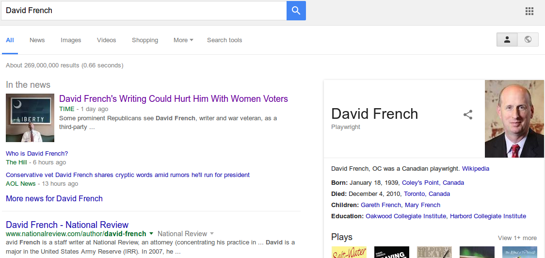 He forgot to Google “David French.”