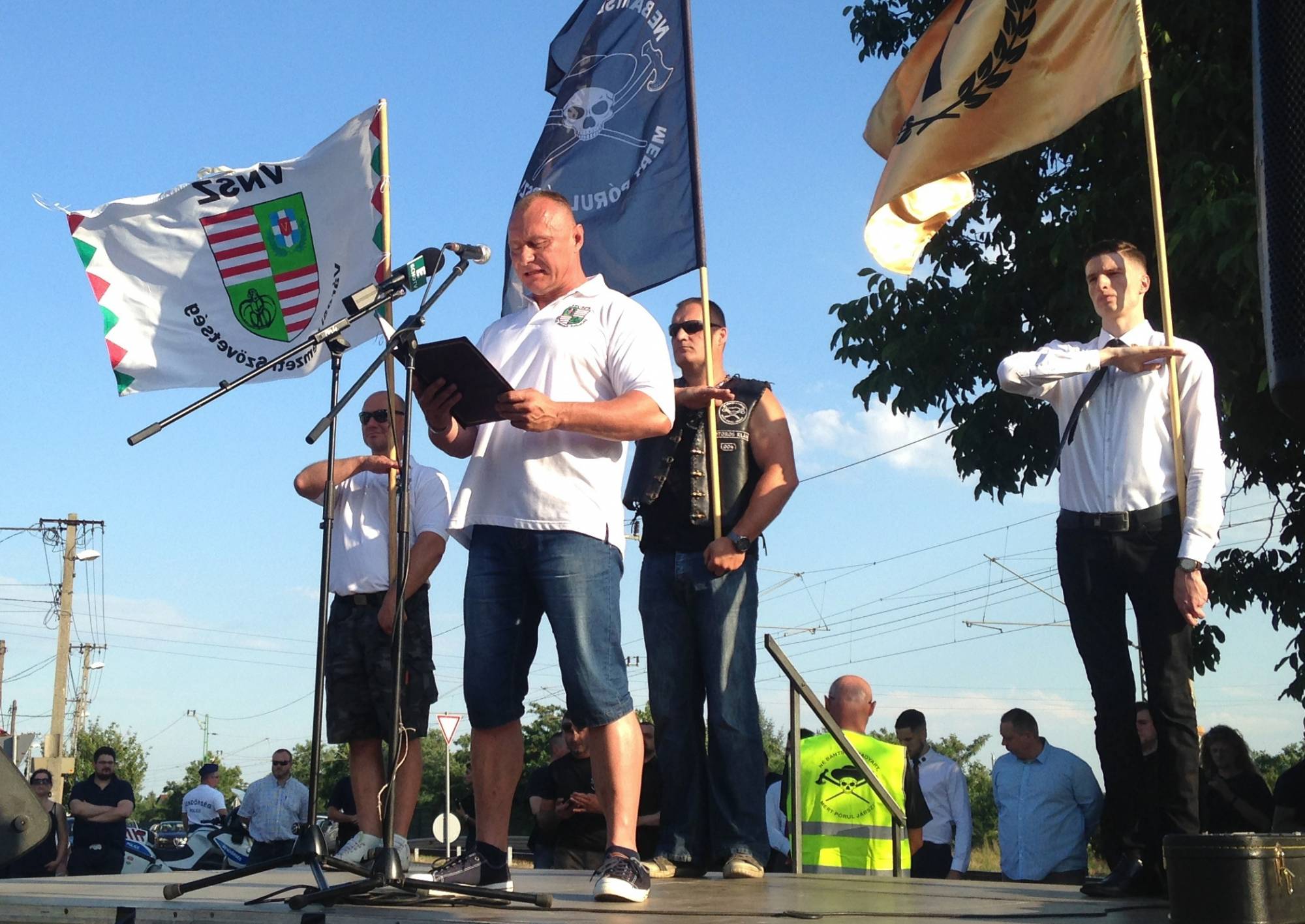 About 300 supporters attended an inaugural event of Force and Determination. Organizers said they represent “the white European man” and want to spread the idea of “ethnic self-defense” in the face of immigration and Hungary’s growing Roma community.