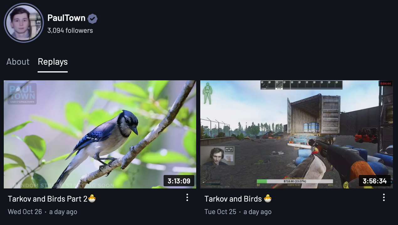 As of right now, you can watch Paul Town on his channel on cozy.tv. You can also subscribe to the podcast feed. Paul Town is probably the one cozy streamer I would say is worth watching on video, but that is hardly practical unless you can turn it on while you’re working some low-effort job from home. It works as a podcast. Watching it live is the most fun, however. He does a lot of chat interaction, and all of his chatters are smart because only smart people can understand Paul Town. Honestly, if you don’t like Paul Town, it means you’re stupid.