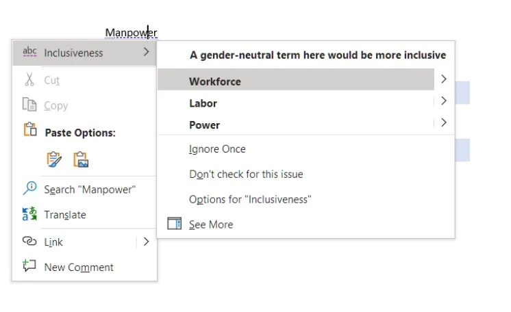 I guarantee you, a lot of people are in these M$ apps and just automatically clicking and replacing “manpower” with “workforce.”
