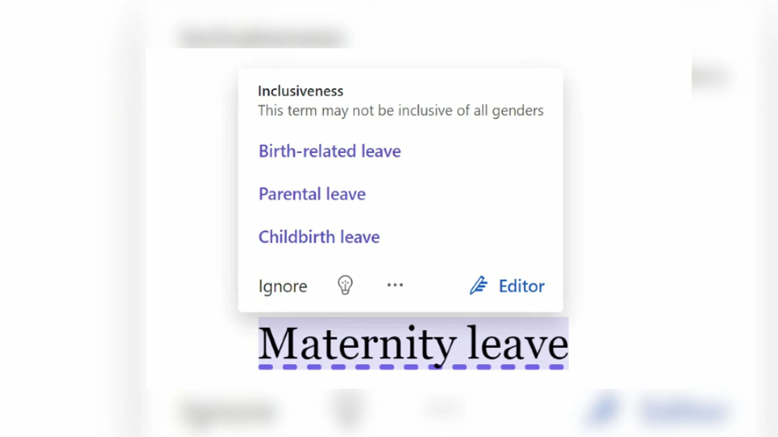 Users can choose to disable the feature, but when it is enabled, it will suggest, for example, “parental leave” instead of “maternity leave” and “postal worker” instead of “postman”.