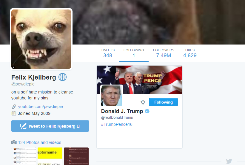 PewDiePie – the most popular YouTuber, at about 47 million subscribers – was temporarily suspended from Twitter, and has been unverified.