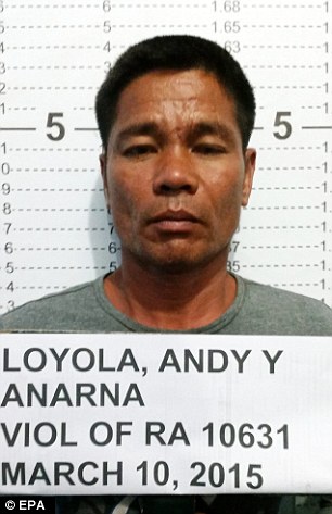 The 46-year-old, who is believed to have been under the influence of drugs, is being held in custody at Silang Cavite Municipal Police Station, south of Manila.