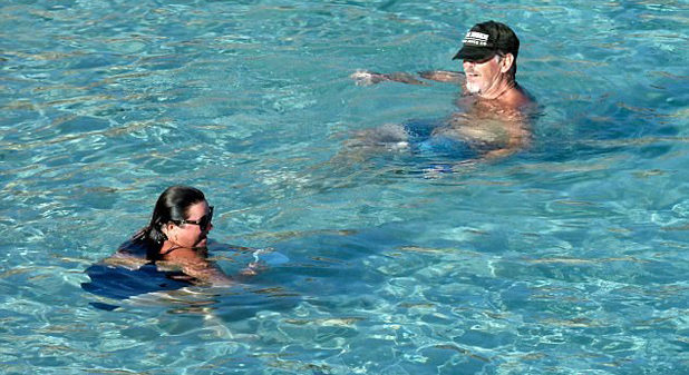 The sweet couple could be seen embracing as the floated around in the cool waves.