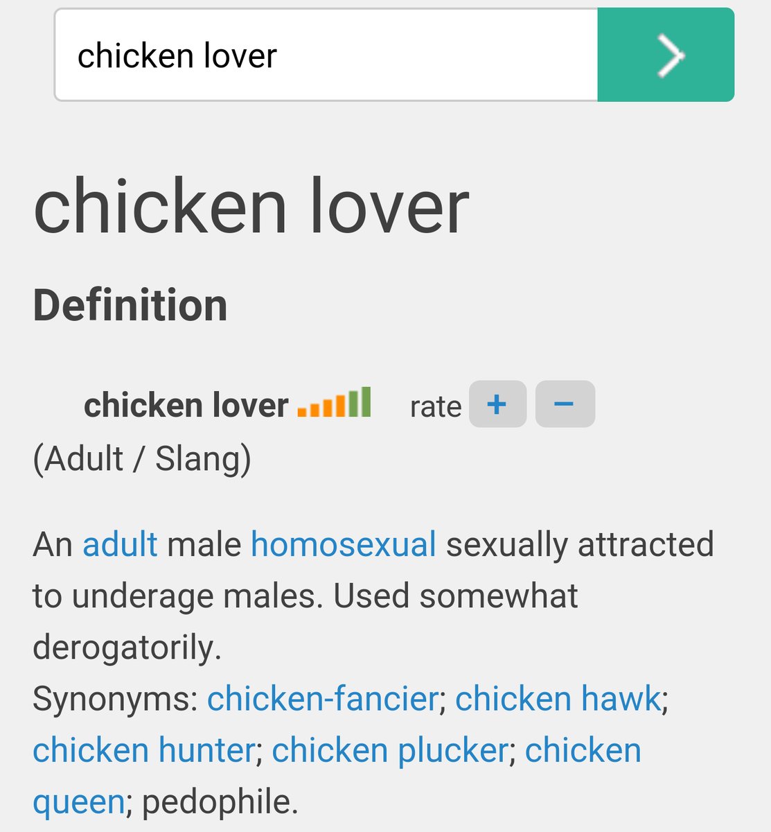 “Chickenlover” is common and accepted homosexual slang for a man who likes sex with little boys.