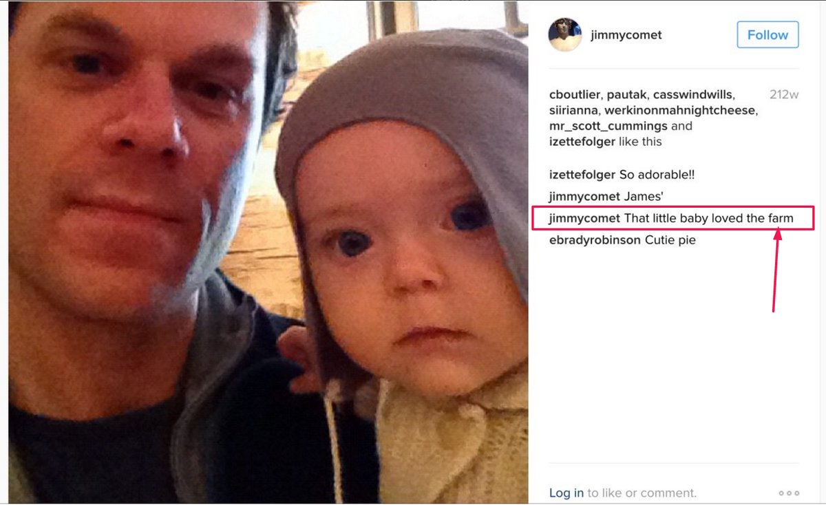 A baby with money, James saying “that’s his money.” Note that these are large amounts of bank-wrapped euros. This appears to be a clear reference to the baby being sold for sex. At least, that is what any normal person would assume. Look at the eyes.