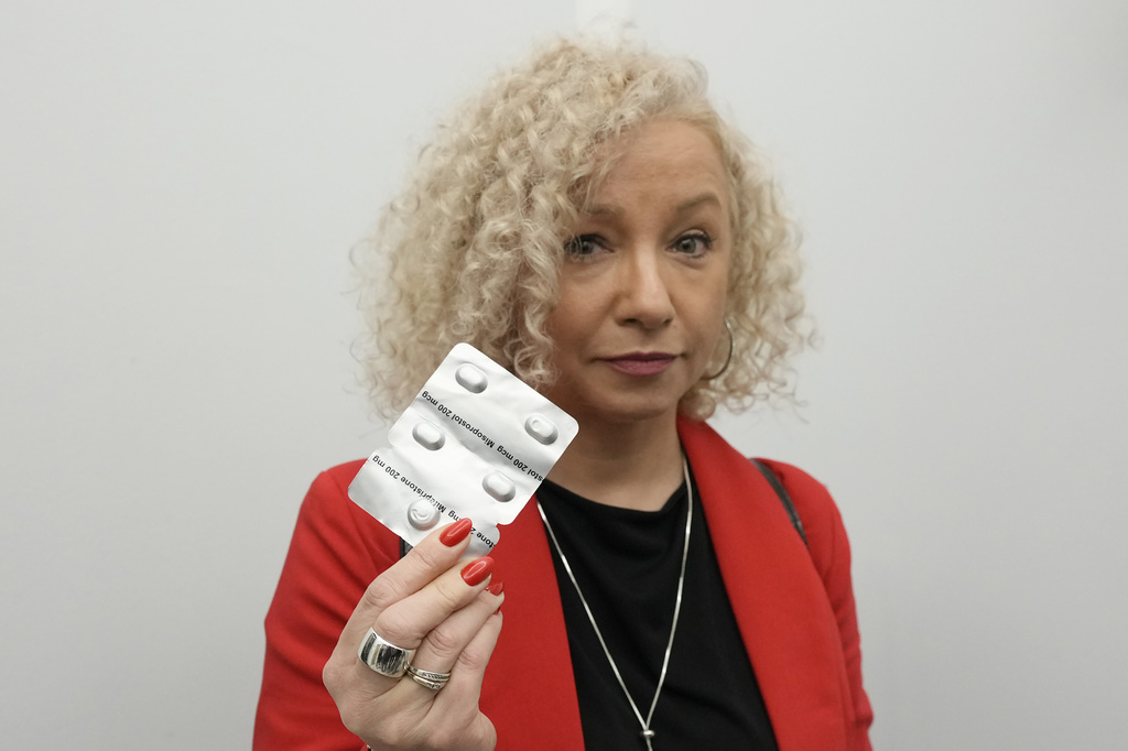 Katarzyna Kotula, Poland’s equality minister, holding some abortion pills