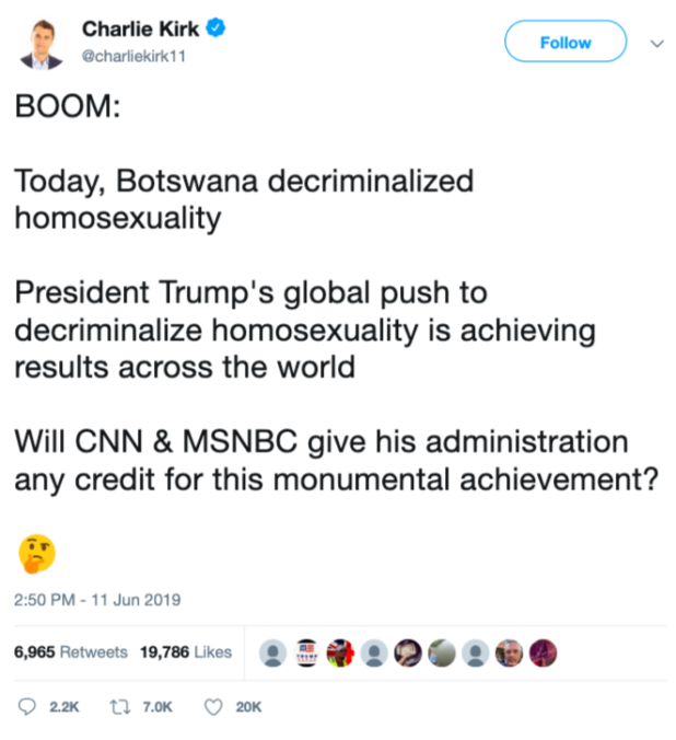 The Trump Administration said that it has the goal of legalizing man-on-man anal across the entire planet.