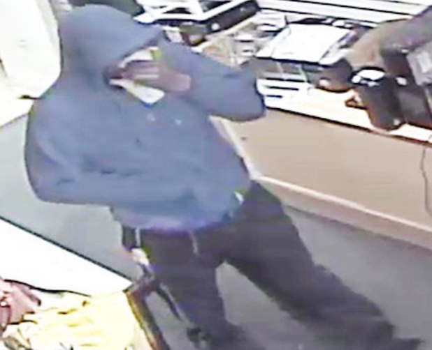 βA black male wearing light blue scrubs, black hoodie, carrying a black semi-automatic handgun tucked in his waistband entered the store covering his face with a white paper towel,β Detective T. Slaton said in a press release. βIt appears the same male has committed three additional robberies at other locations in Henry County.β