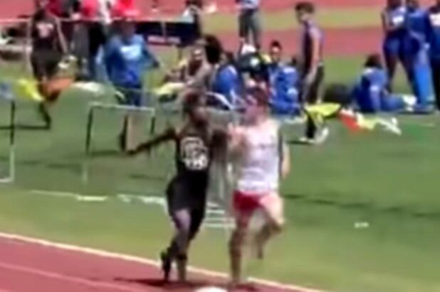 The incident occurred during the 1,600-meter race at the Tohopekaliga Tiger Invitational in Kissimmee, Fla., where an athlete who was not in the race got in the way of the first-place runner, who reportedly told the disrupter to get off the track.