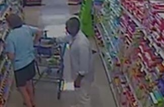 The video shows a woman shopping; while she’s looking for a product in one of the aisles, the man creeps up behind her, reaches into her purse and steals her wallet.