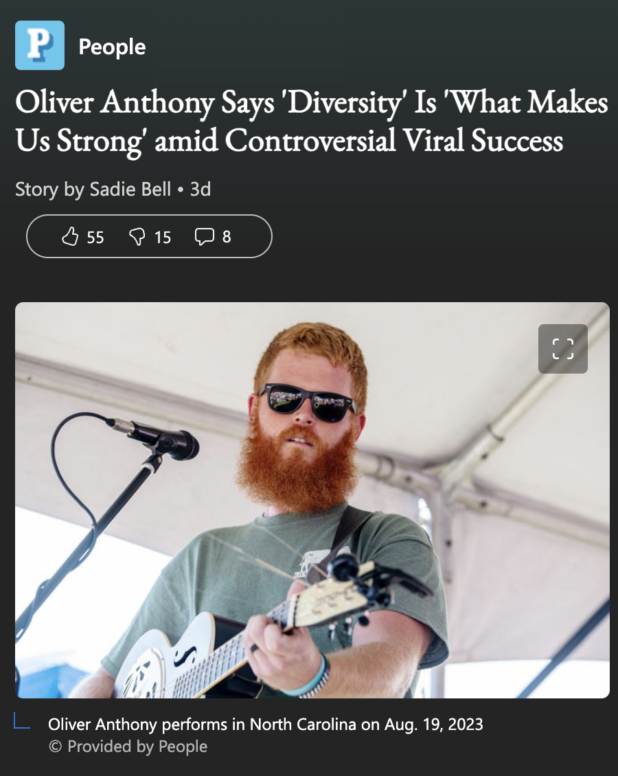 As everyone on earth is too well aware, a couple of weeks ago, a ginger-bearded hillman with gynecomastia and dogs took the world by storm with “Rich Men North of Richmond,” a song about how he is poor and it’s the fault of rich people. His name is Oliver Anthony or Anthony Oliver. (I legit don’t remember – it’s a stage name. His real name is Lunsford, which I do remember.)