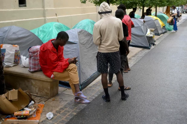 Migrants camping in downtown Marseille