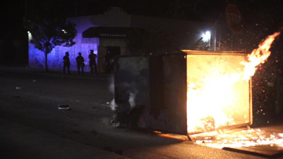 “People have broken into the Portland Police Association office and lit the building on fire,” the Portland Police Bureau tweeted overnight. Authorities subsequently declared the protest a riot.