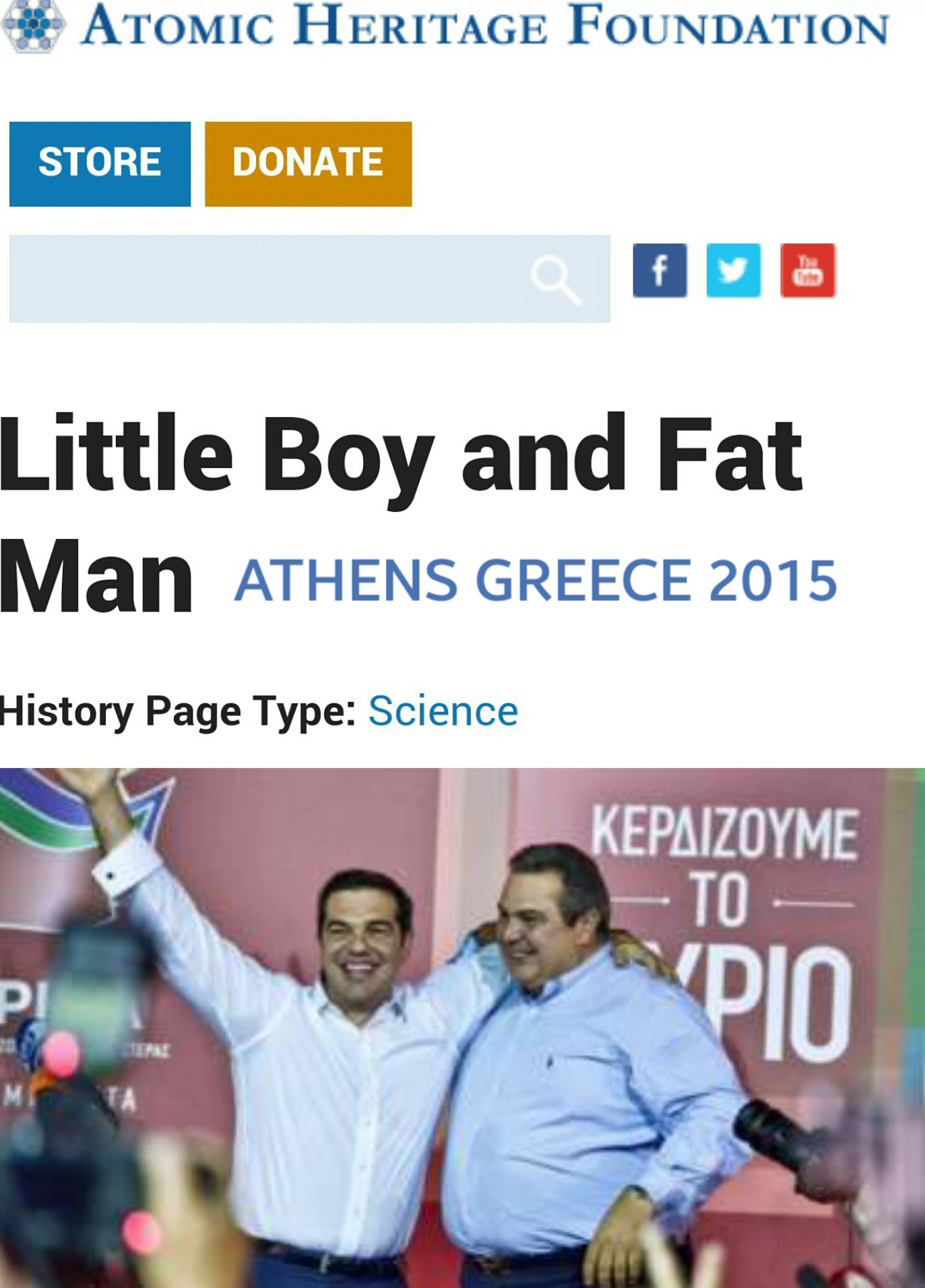History was made yet again on September 20th 2015, when Allied Zionist powers dropped another set of bombs on Greece. An Austerity Version of “little boy” and “fat man”, otherwise known as Alexis Tsipras and Panos Kammenos, Prime Minister and Minister of Defense. The Greek people couldn’t imagine what destruction would follow.