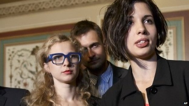 Two members of the feminist group, Pussy Riot, are suing the Russian government over their imprisonment for a protest in a Moscow cathedral.