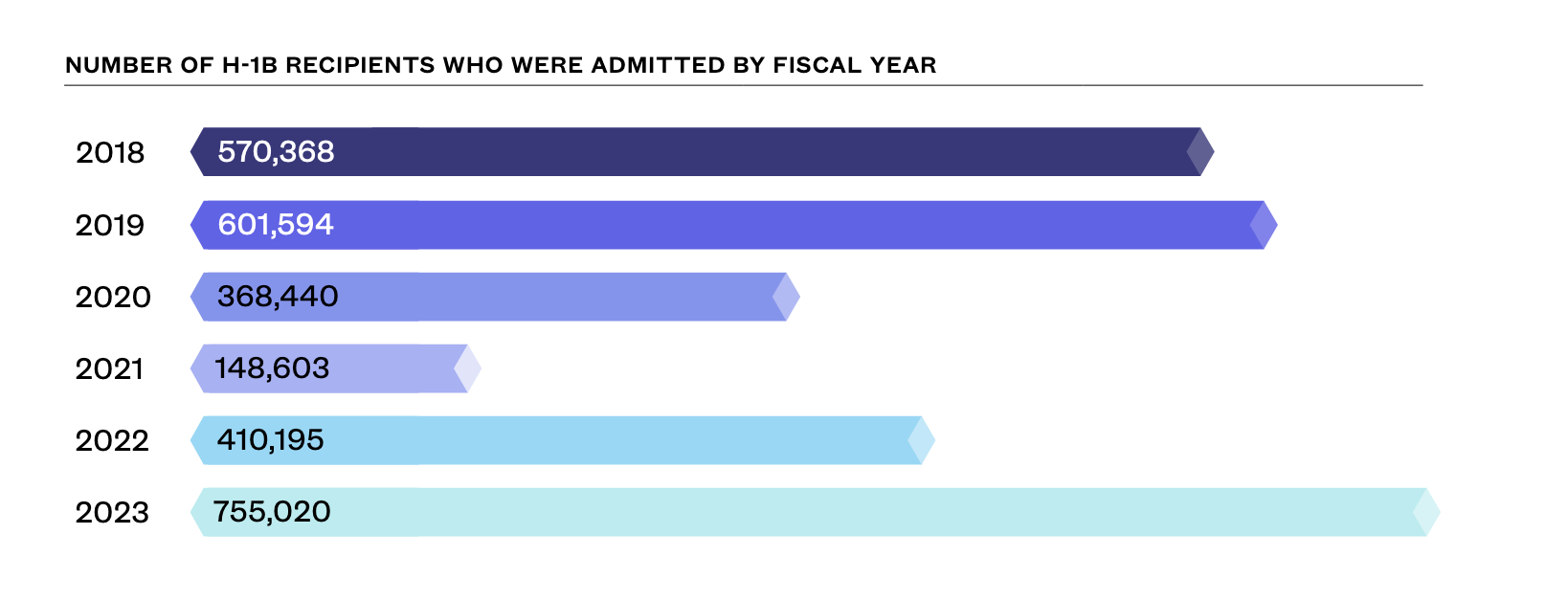 In 2023, 755,020 of these people came in and 72.3% of them were Indians.