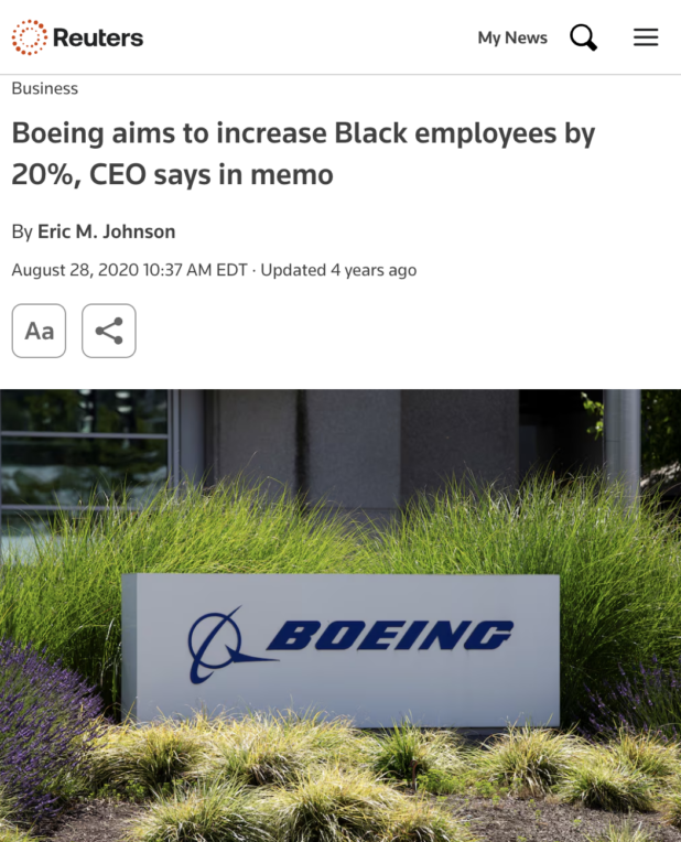 After Floyd’s murder, many companies, including Boeing, made the decision to remove all whites from their companies as a way of showing solidarity against racism and also increasing their efficiency by tapping the untold power of melanin (the most valuable substance in the universe).