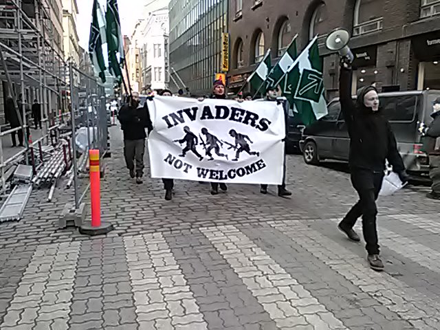 The Nordic Resistance held a successful protest against refugees being allowed in to Finland at the weekend and once again proved that when the enemy is not forewarned about the protest, there is no counter protest. Just like with National Action recently in Newcastle, everyone met by the Resistance were supportive of what they are doing and there were around a hundred people at the multi-group rally that took place afterwards.
