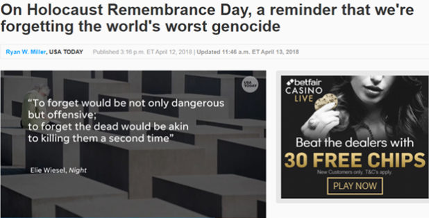 Oy gevalt, remember us goyim! Also lol @ a casino ad in an article about the Shoah. Google Adsense knows what’s up.