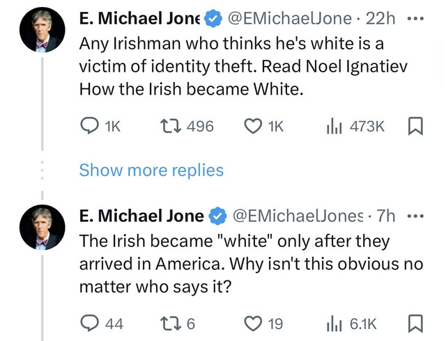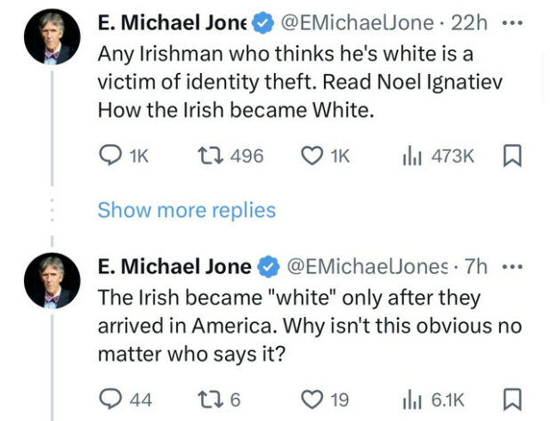 So, just to clarify: Jones is not only denying our concept of “whiteness,” he is also denying our concept of ethnic identity.