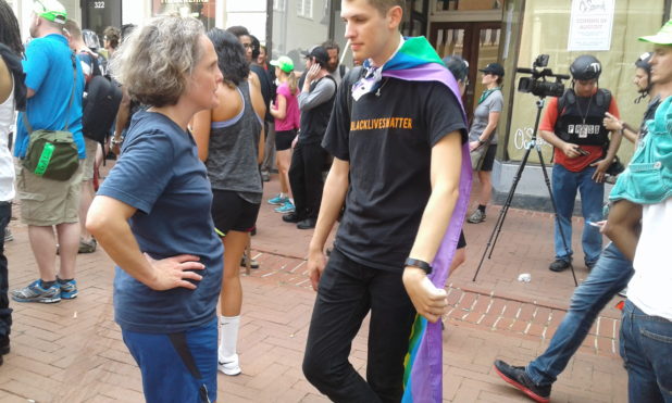 And here are the Black Lives Matter crackers defiantly calling for the overthrow of the constitutionally elected American government. No wonder Governor McAullife said they had no place in his state. Wait, this just in… It was actually the people wanted to peacefully assemble after having received a permit from the city and were then violently attacked who the governor demanded leave. The people demanding a communist revolution are welcome.