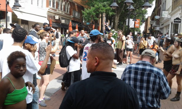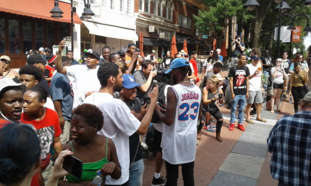 At one point the group started chasing someone and calling him “Murderer.” This was just three blocks north of where the fatal car crash took place and only minutes after.