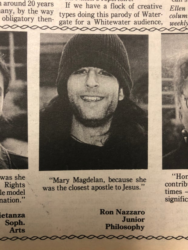 The Guardian was only able to find one earlier photograph attached to his real name. It appeared above a vox pop in the Villanovan, the student paper of Catholic, Pennsylvania-based Villanova University, in 1994.