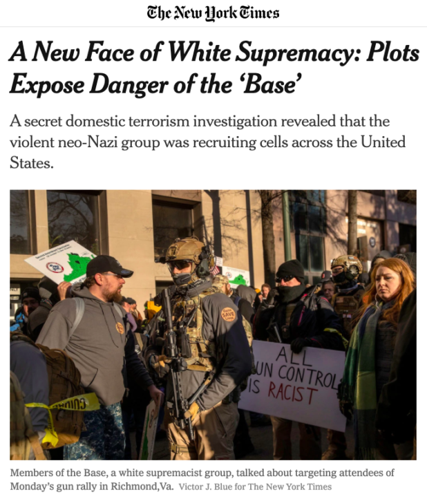 On Wednesday, the New York Times ran a big article informing the world that there is a “new face of white supremacy.” They claim that this face is that of “The Base,” a satanic death cult.