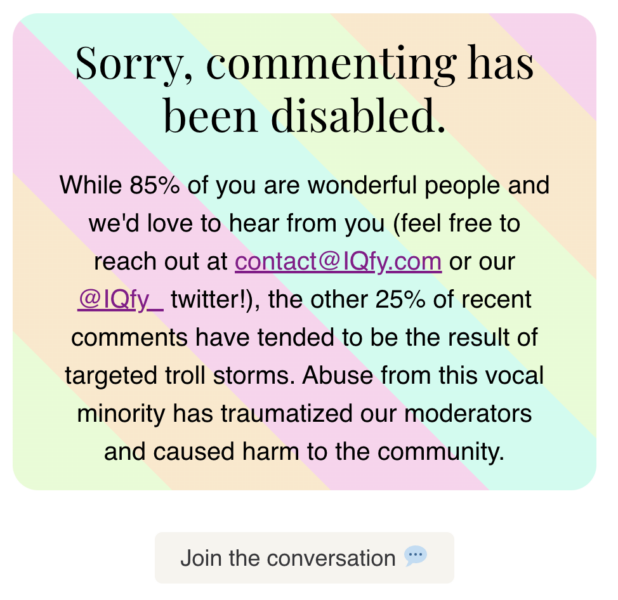 They even disabled comments on the post, saying there were too many trolls posting.