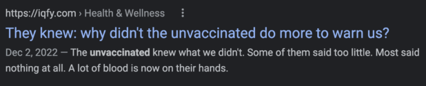 The article is entitled “They knew: why didn’t the unvaccinated do more to warn us?”