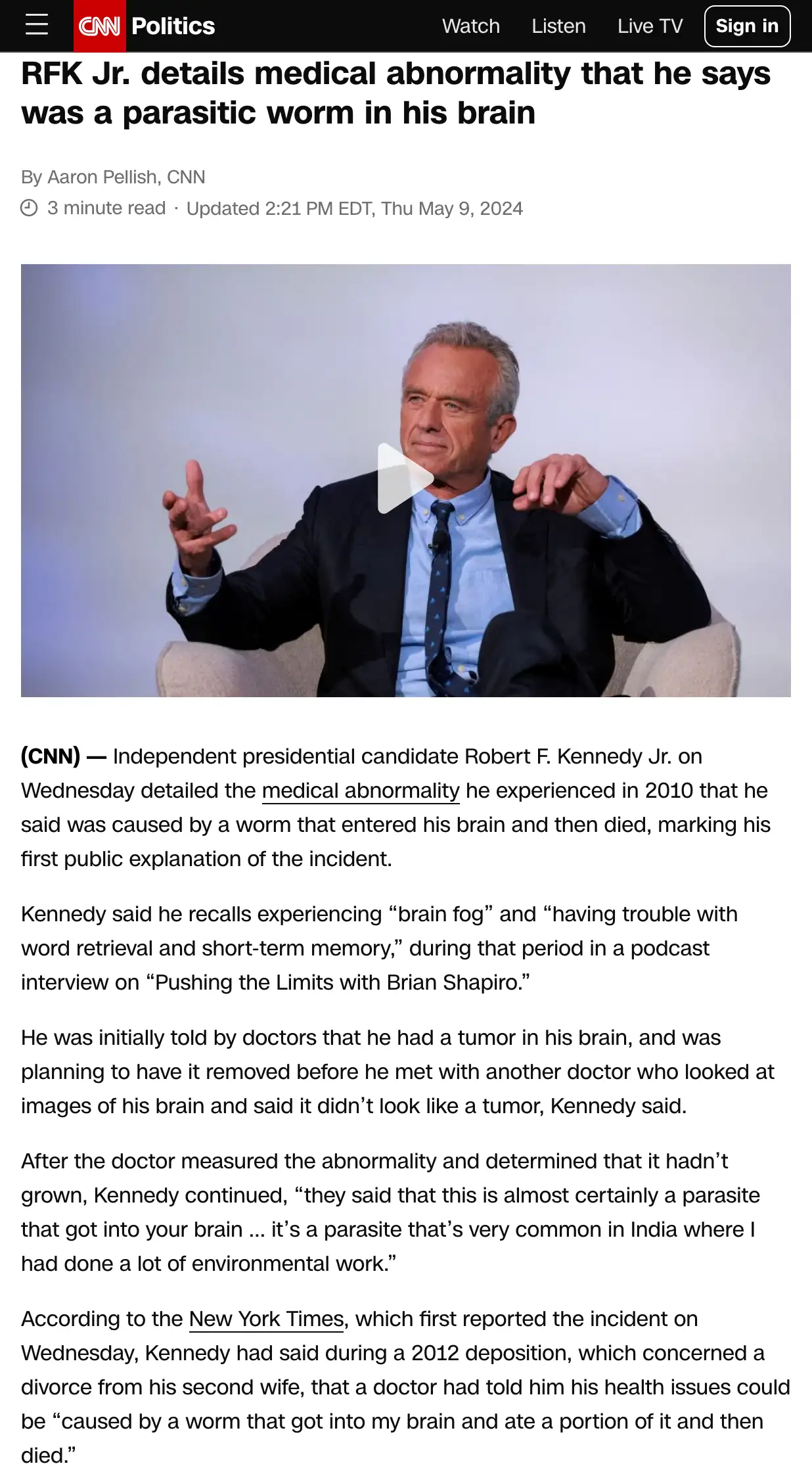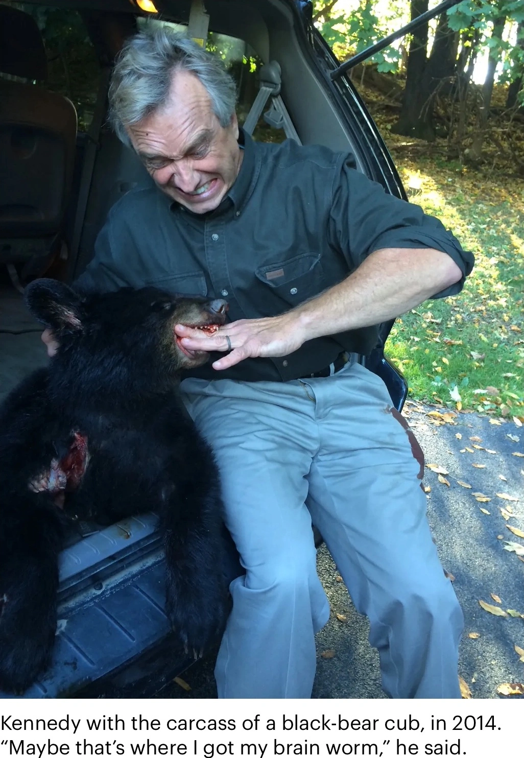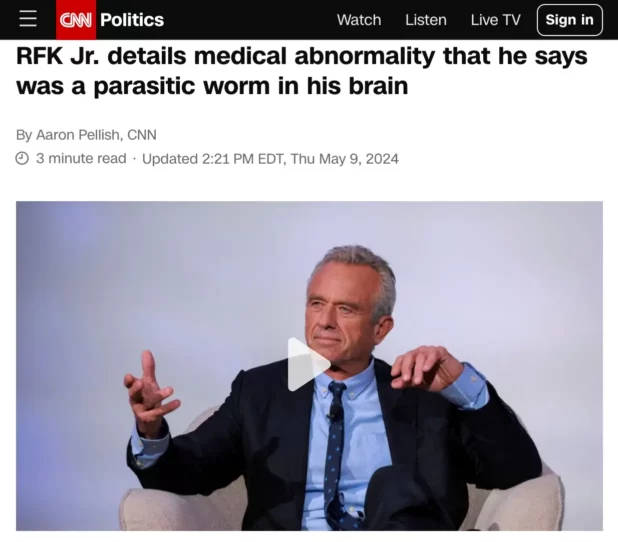 That was a reference to a report in which the Times surfaced a deposition from one of Kennedy’s divorces in which he said a parasitic worm ate part of his brain.