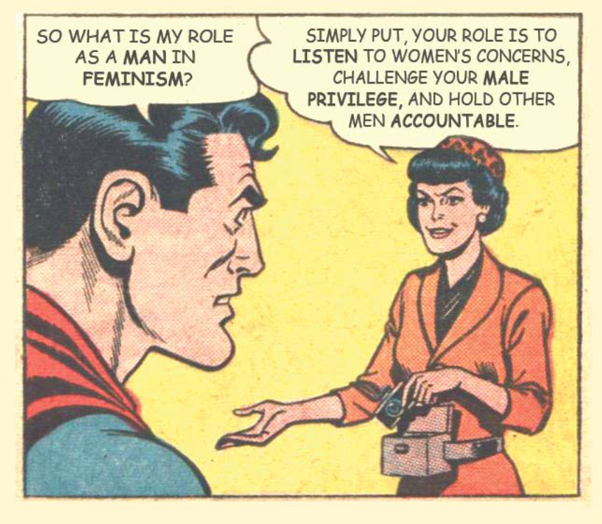 Of course, the discussion has never and presumably will never get to this point, as every time I’ve ever made these arguments, male feminists have come back with “you’re just mad because you can’t get laid.”
