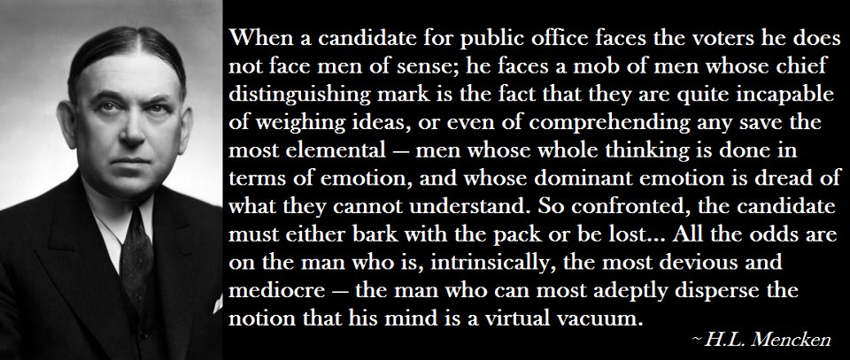 Mencken’s “Notes on Democracy” was written 100 years ago, but it could have been written yesterday.