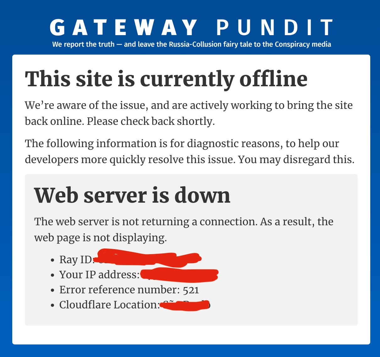 The Gateway Pundit was down for several hours today.