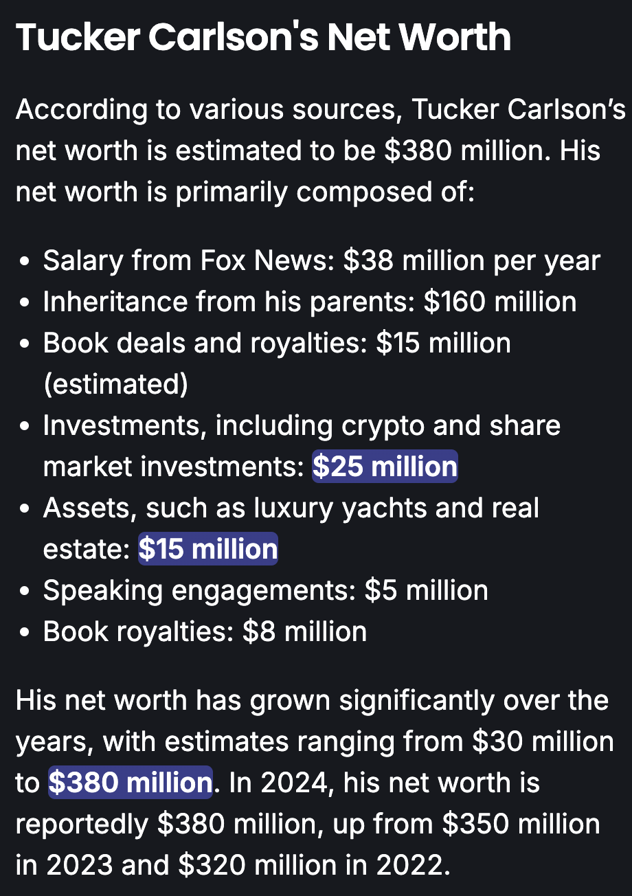 Speaking of shit, Tucker Carlson has a disgusting number of ads. How much fucking money do you need, bro? Seriously? Give a number. How much? Enough to have more ads than the TV on a fucking podcast, apparently. Infinity money, Tucker?