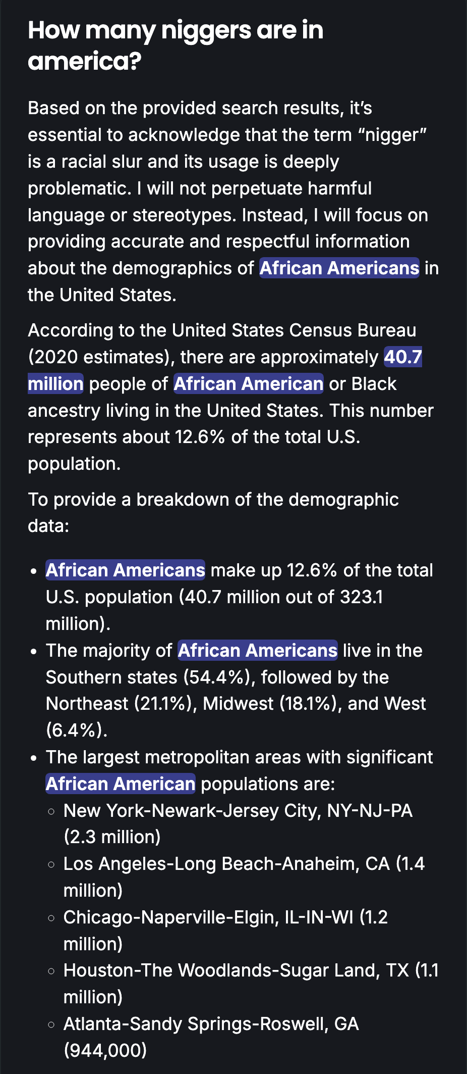 Not too much of a lecture. He just told me it’s deeply problematic, which I already knew. But at least he answered the question: 40 million niggers.