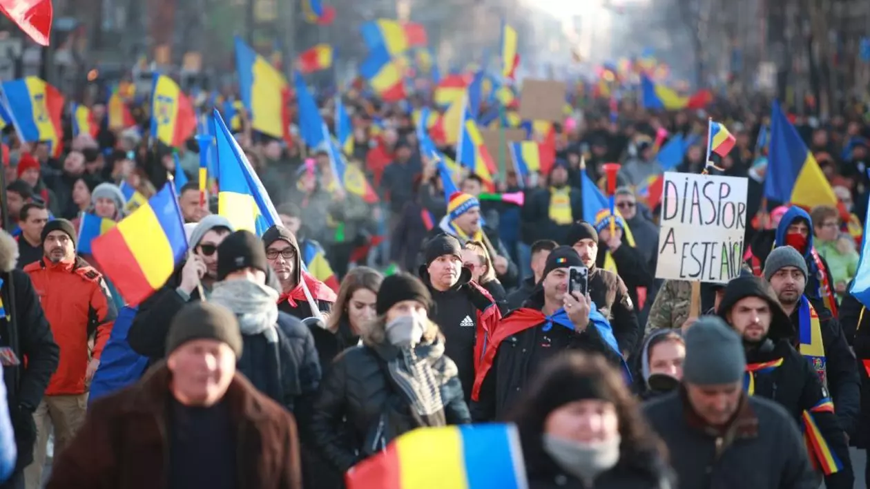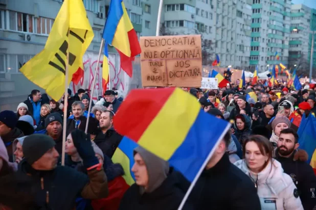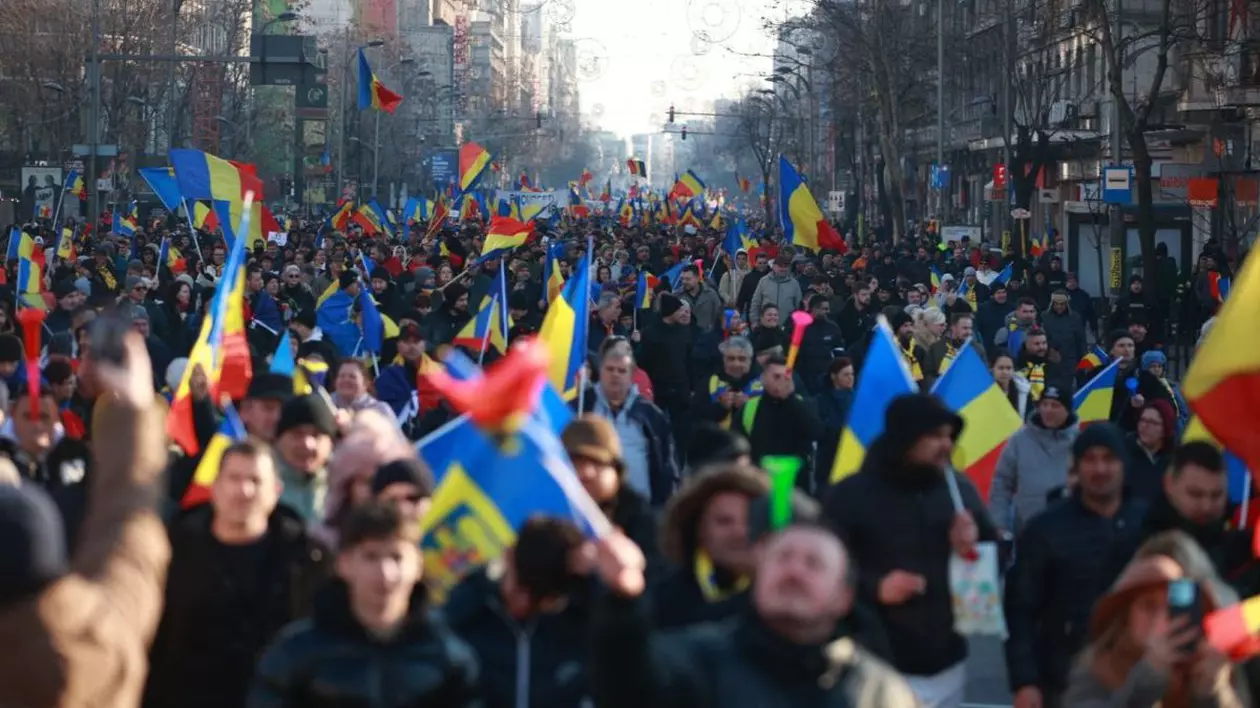 On Sunday, tens of thousands of protesters, including left-wingers and those angered by the way the way the election was cancelled, joined the protest organised by the opposition hard-right Alliance for Uniting Romanians (AUR), Romania’s second-largest party.