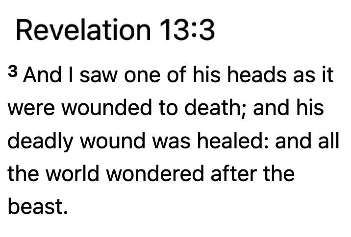 Having been familiar with these interpretations of John’s Revelation, remembering when they were popular, I remembered that these people used to say that the antichrist would be shot in public and survive miraculously, which would cause people to rally around him. This was based on Revelation 13:3.