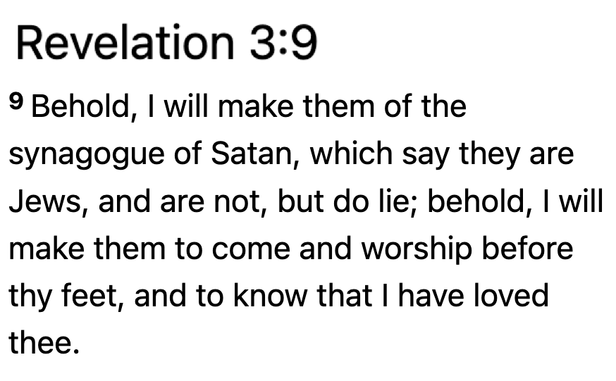 I should add: it was not only Evangelical Christian Zionists who were talking about the End Times. There were also non-Zionist Baptist sorts, as well as Catholics, who agreed with some of the ideas of the Evangelicals but also said that the Israeli state was evil. They would cite Revelation saying that modern rabbinical Jews are not the people of the Bible, but a satanic cult.
