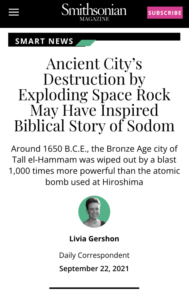 The angels then ended up having to pull Lot out of the city. Immediately after he left, the city was destroyed by a gigantic space rock. A few years ago, some very non-religious archaeologists announced that they’d found the city that “inspired” the story. They said the space rock that hit the city was 1,000 times more powerful than the atom bomb that was dropped on Hiroshima.