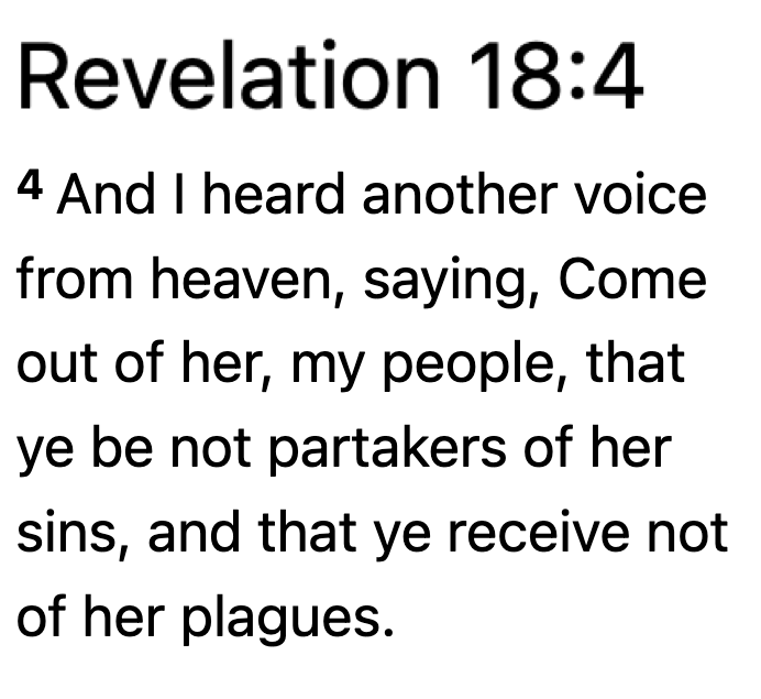 Whether it’s the End Times or not, the verses in Revelation about going out from Babylon apply to this modern Western multicultural gay feminist urban environment of modern America and Europe.