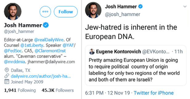 Jew Ben Shapiro’s Jew employee Josh Hammer famously explained it thusly: “Jew hatred is inherent in the European DNA.”