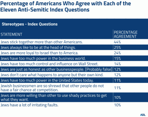 The Anti-Defamation League has yet another study out claiming that millions of Americans hate the Jews.