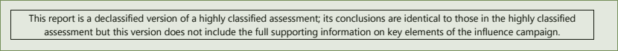 We assess with high confidence that Russian President Vladimir Putin ordered an influence campaign in 2016 aimed at the US presidential election, the consistent goals of which were to undermine public faith in the US democratic process, denigrate Secretary Clinton, and harm her electability and potential presidency. We further assess Putin and the Russian Government developed a clear preference for President-elect Trump. When it appeared to Moscow that Secretary Clinton was likely to win the election, the Russian influence campaign then focused on undermining her expected presidency.