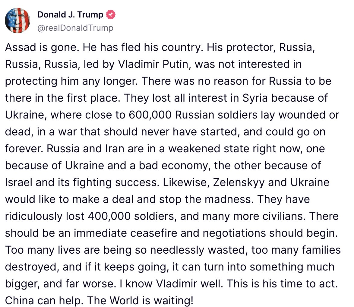 Okay, I might be a Russian shill, but all I do is respond to what I see. Right now, I see the US government (and Donald Trump) pushing the narrative that Syria’s fall is Putin’s fault, and then I see right-wingers going around saying the same thing.