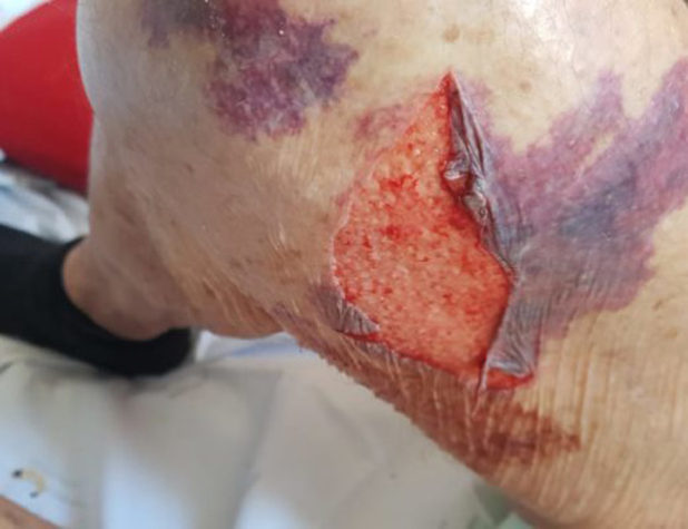 “The piece of skin which was ripped from his leg is about 7 cm by 4 cm in size.”